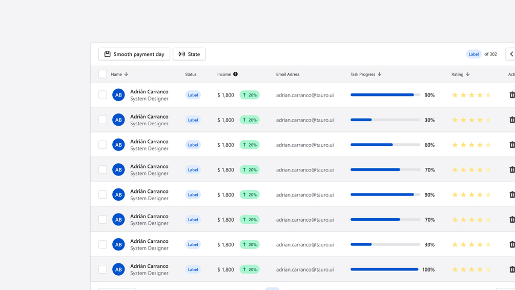 Tauro Design SystemAdrián Carranco2 ratings€0+0eurFree version· Components· Guidelines€20+20eurTauro UI· Tokens· Atoms· Molecules· Organisms· Templates· Pages· Documentation· Changelog and feedback possibility.---Version 1 will come with Library Repository.20eurName a fair price:€I want this!Add to wishlist New wishlistShareShare on XShare on Facebook Copy linkCopy product URLRatings5(2 ratings)255 stars100%4 stars0%3 stars0%2 stars0%1 star0%